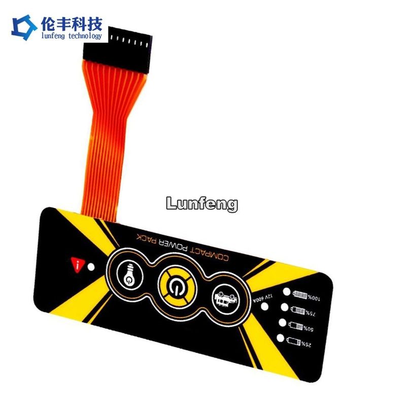 De Lunfeng FPC Membrane Switch is gemaakt van hoogwaardige componenten, waaronder metalen koepel en connector.die een tactiele respons biedt en de gebruikerservaring verbetertDit product is ook voorzien van een 3M467MP backadhesive, die ervoor zorgt dat het stevig op zijn plaats blijft.